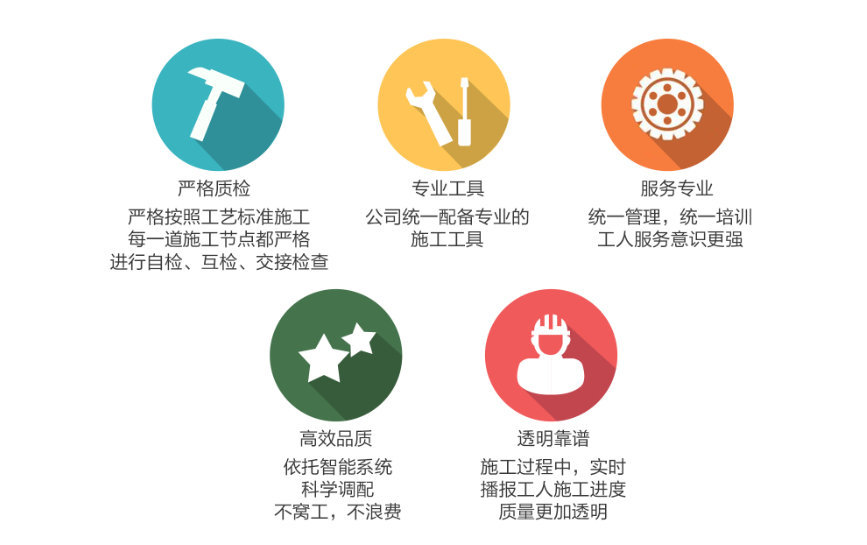采用统一管理,统一培训的工人,享受公司的工资和福利待遇,并直接接受公司的管理,具备较高的职业素养和服务意识,彻底告别传统家装的“分包”方式