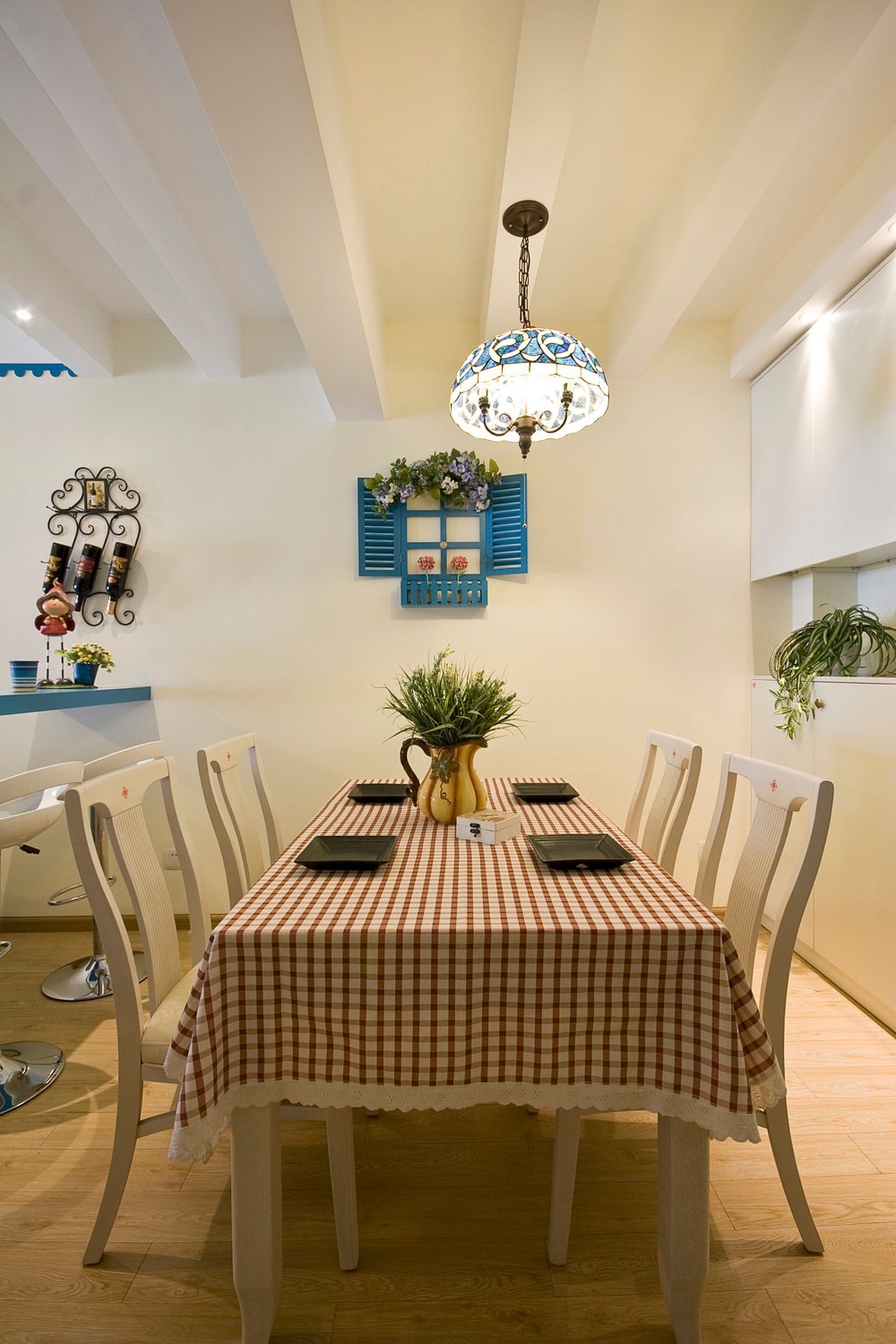 设计说明:将现代和传统元素结合在一起,以现代人的审美打造古典韵味的事物,让改良后的地中海风格体现出幽雅舒适的生活态度。 本案我们尝试用一种新的语法来重新诠释地中海风格,提炼地中海传统建筑精神以及意念中的精去除表象,直达内里,并充分考虑自然和传统原重点的因素,以唤醒人们深藏的场所记忆和文化认同感。在整个装饰上,到处都充满着和谐的温馨,让人心情舒畅,简单质朴的肌理墙面渲染着地中海的情怀,大自然的色彩就在这样的背景上展开