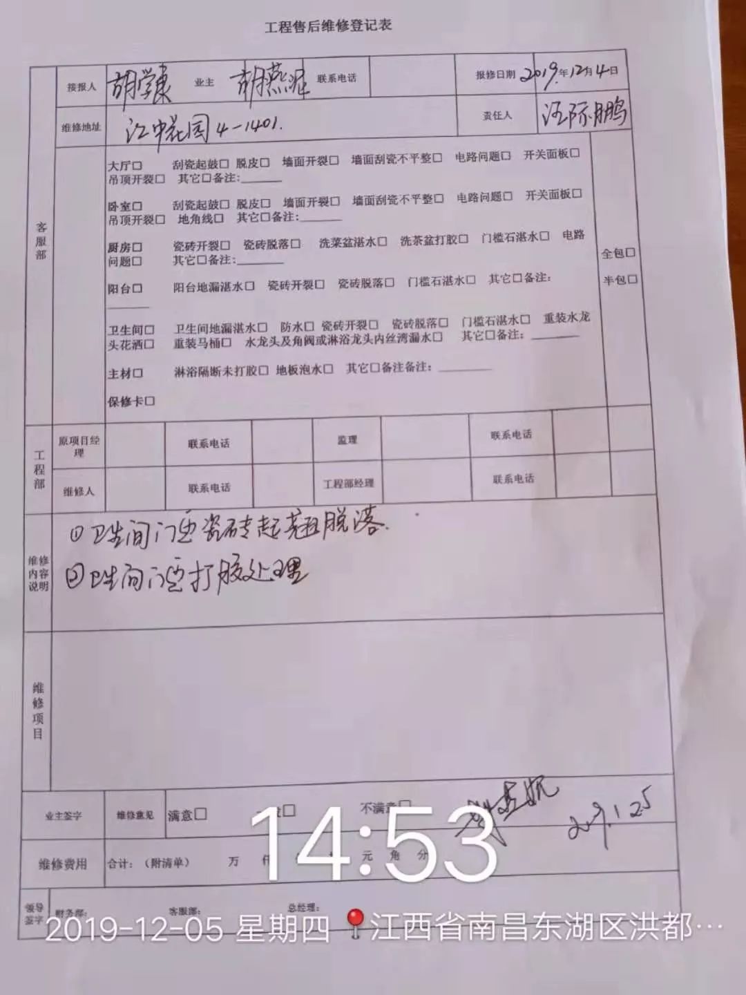 装修两年后第一次出现问题:卫生间瓷砖起翘脱落