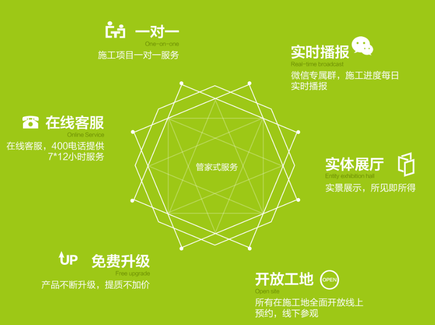 采用统一管理,统一培训的工人,享受公司的工资和福利待遇,并直接接受公司的管理,具备较高的职业素养和服务意识,彻底告别传统家装的“分包”方式