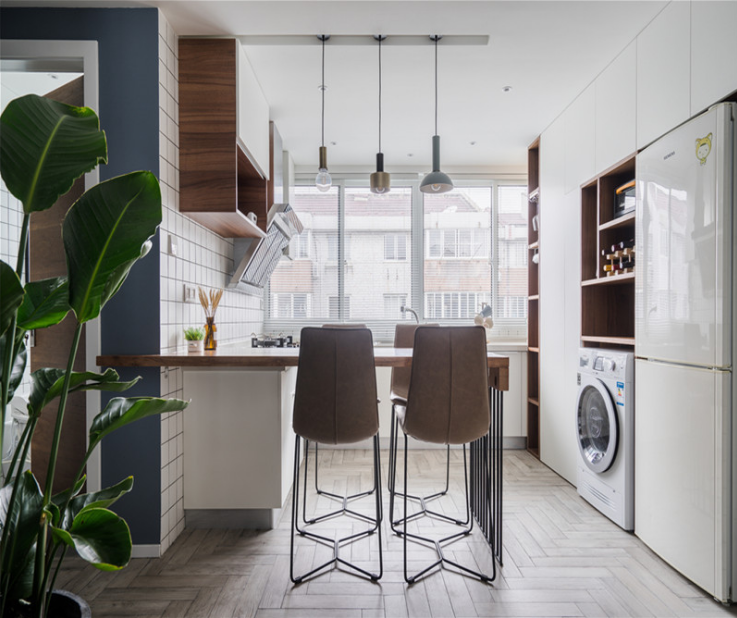 餐厅原有的空间非常的有限,设计师设计了入户鞋柜和卡座相结合的做法,既节省了空间又保证了功能。