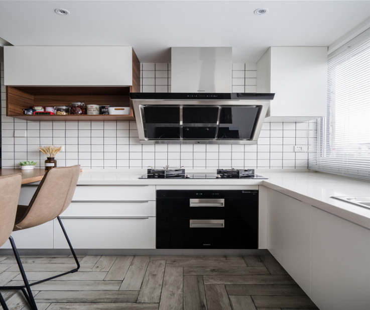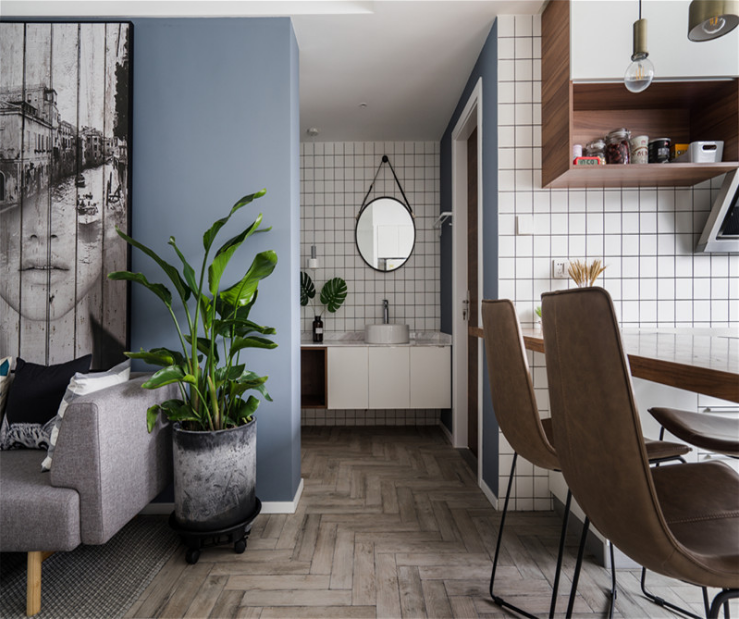 进门走廊处,做了线框内嵌处理,拉宽过道的视觉感